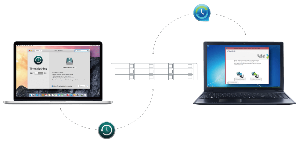 The TS-1232XU-RP can handle file backup tasks from Windows® PC and Mac. By using QNAP's NetBak Replicator backup utility, with a few simple clicks, you're all set. For macOS users, Time Machine can be set up to save to the TS-1232XU-RP. Combined with snapshots and Hybrid Backup Sync, the TS-1232XU-RP provides the solid foundations of a disaster recovery plan.